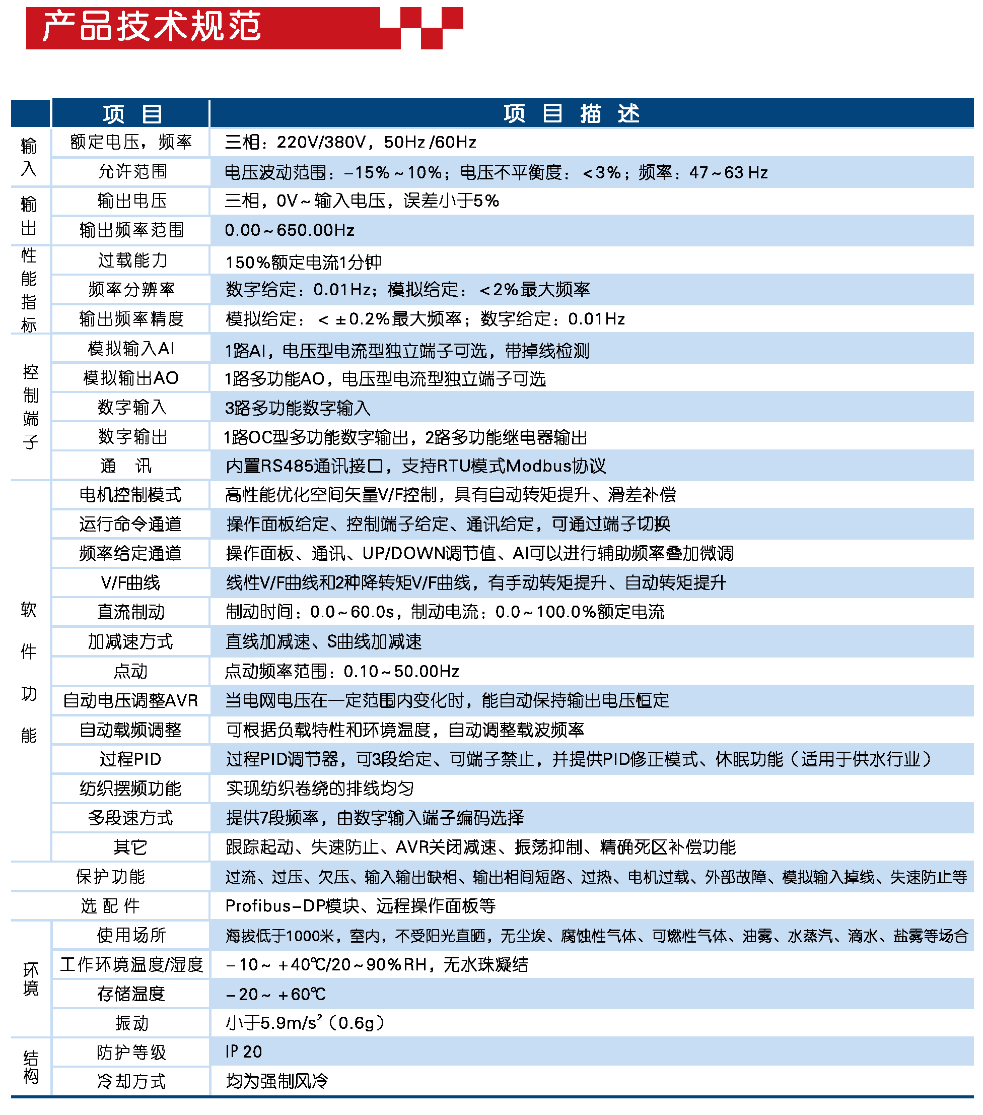 SVD130系列低壓變頻器采用集成了高性能優(yōu)化空間電壓矢量算法,具有自動(dòng)轉(zhuǎn)矩提升、滑差補(bǔ)償、振蕩抑制、跟蹤起動(dòng)、失速防止、精確死區(qū)補(bǔ)償、自動(dòng)穩(wěn)壓、過程PID、自動(dòng)載頻調(diào)整等高級(jí)功能。